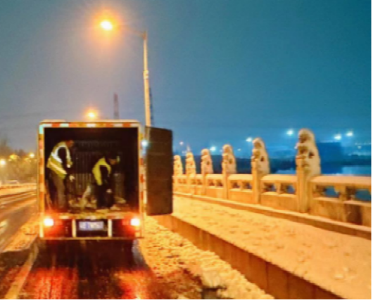 早在風雪來臨前,蕪湖水務公司各片區就已經展開部署,備好鏟雪工具、融雪劑等除雪物資,考慮到雨雪天氣可能出現的管網冒溢等情況,組織對各道路導排點開展巡查。