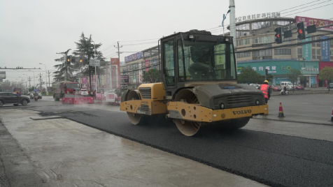城市另一頭,迎賓大道升騰著熱氣,瀝青運料車和壓路機正熱火朝天地打著配合,進行著瀝青攤鋪工作。經過數月的布管、回填,這條道路的雨污分流施工已接近尾聲。