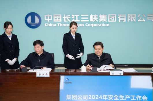 會(huì)上,三峽建工、三峽能源、湖北能源、長(zhǎng)江環(huán)保集團(tuán)有關(guān)負(fù)責(zé)人先后作表態(tài)發(fā)言,部分部門(mén)、單位代表簽訂了2024年安全生產(chǎn)責(zé)任書(shū)。