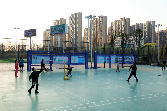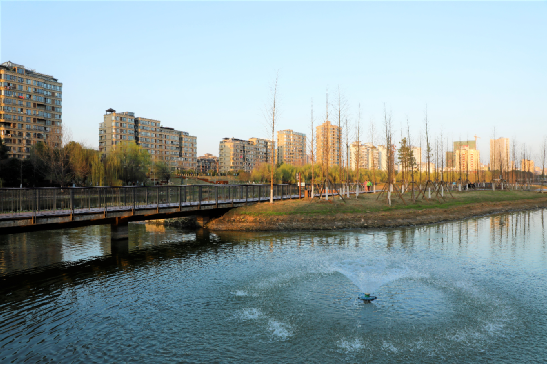 “我們治理河道講究統(tǒng)籌兼顧、因地制宜。該河段河底泥淤積嚴(yán)重,大量垃圾淤塞其中,我們將清理出來的淤泥壓實成泥餅,作為人工綠島的基質(zhì),在上面栽種水生植物,將其打造成濱河休閑地帶。”譚亮介紹,河道干凈了,環(huán)境變好了,園區(qū)內(nèi)配備了球場、棧道、公廁等基礎(chǔ)設(shè)施,附近居民在茶歇飯后可以來這里散步休閑、健身娛樂。