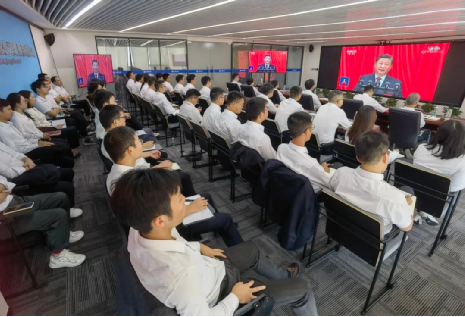 何文戰(左側中)在新員工見面會上鼓勵青年員工腳踏實地、增長才干、不負青春