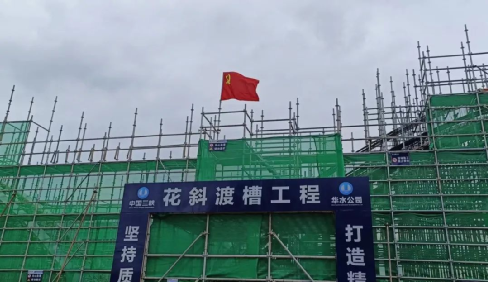 黨旗在寧都縣梅江灌區項目現場高高飄揚